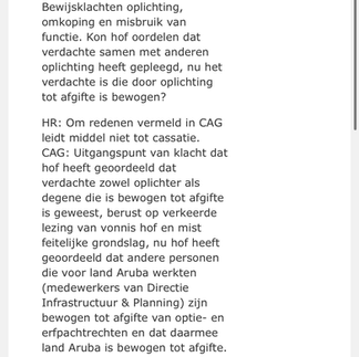 • Complicidad den oplichting: Involucrasion den engaño di Pais Aruba pa otorgamento di tereno (art. 2:305 SrA).